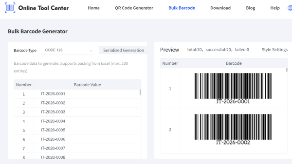 Etsitkö ilmaista viivakoodigeneraattoria? Tutustu tärkeimpiin ominaisuuksiin: luo koodi 128, UPC ja EAN-viivakoodit irtotavarana ja lataa ne joustavissa kuvamuodoissa, kuten PNG, nopeasti ja ilman vesileimejä.